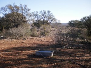 Currently the object holding water in the photo is serving as a water trough for wild animals such as deer and turkeys and for many birds.  A water trough has not always been this metal object’s purpose.  When Grant and I were living in the 7.5 feet by 15 feet, one room “cabin” with no running water and electricity, this was my bathtub in the winter.  Grant chose to bathe in a children’s plastic swimming pool outside.  During the summer, when the sun was strong enough to heat up the water and the air was warm, this was fine with me, but during the winter, I lost my courage and stamina!  That is when I had an idea as I waited on Grant one day at a hardware store.  I saw this nifty tub and thought to myself, using my creative drama teacher mind-set of course, there must be a million uses for these kinds of tubs.  We bought the tub and brought it “home”.  Of course it had to stay outside except for when I was bathing because there was no room for it inside the cabin except in the small, very small empty space.  When it grew dark, Grant would bring the tub inside, and I would heat two metal coffee pots of water on the Coleman camp stove.  We would haul in additional water.  One would be amazed at how very little water it actually takes to bathe and get perfectly clean when you have to haul the water and bring it inside from the outside and heat it on a Coleman camp stove!